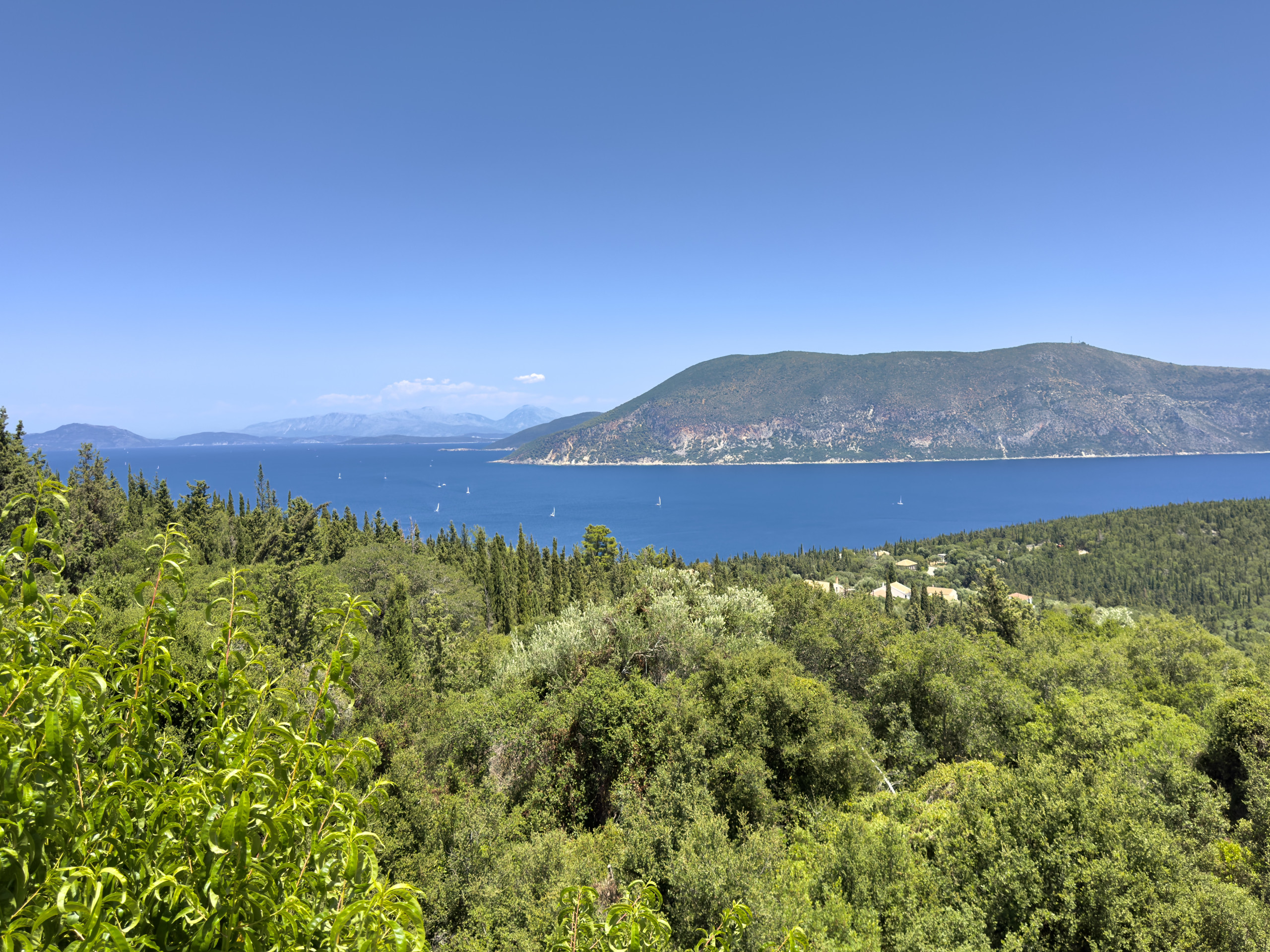 Hervorragende Ausblicke auf das Meer bieten die Inseln Lefkas, Meganissi und das mythische Ithaka, die Heimat von Odysseus, und von den weiten Terrassen aus kann man die stetige Passage der kleinen Segelflottillen, Fähren und bunten Fischerboote verfolgen, die zwischen den Inseln verkehren.