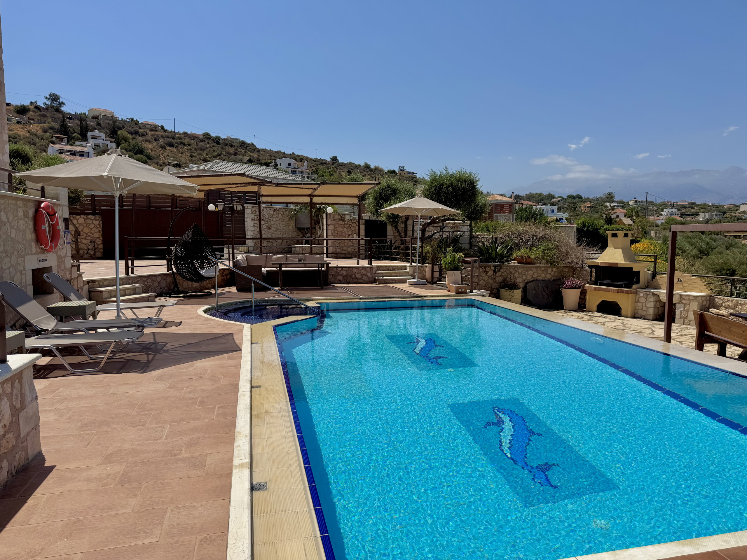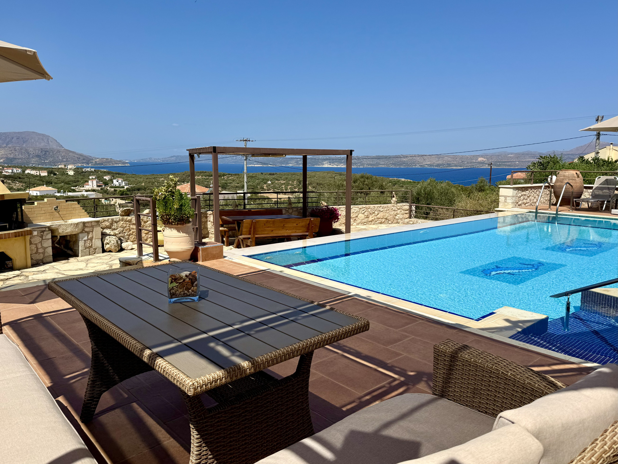 This villa was perfection.. location, view, pool, shady area to eat and cleanliness.. we loved walking to Plaka. We loved Almyrida to eat. We loved the beach at Kalyves.. it was just a perfect holiday for our family! We met some friends at Bali Beach one day as this was a good half way point to where they were staying and this was really fun.