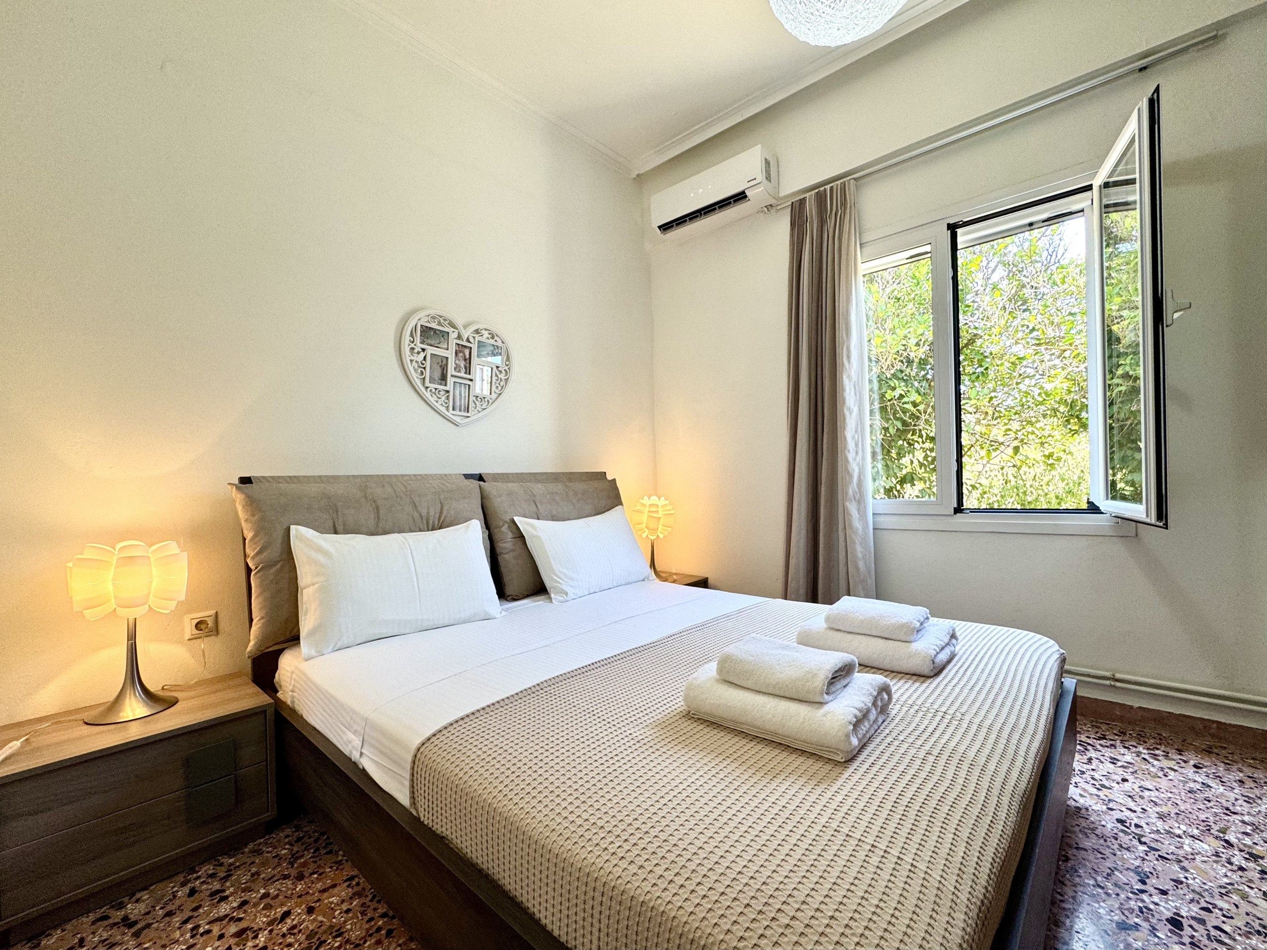 Es ist nur ein kurzer Spaziergang von der Villa Andreas, die sich am Rande der Häuser und alten Gebäude befindet, aus denen das Dorf Kamisiana besteht, zu einer Auswahl an Tavernen und weniger als einen Kilometer zu einem langen, gemischten Kiesel- und Sandstrand. Selbst im Hochsommer bleibt der Strand relativ ruhig, aber wenn Sie etwas mehr Action suchen, dann bringt Sie eine kurze Fahrt oder eine Busfahrt (der Busdienst fährt regelmäßig entlang der Hauptküstenstraße) zu einer Reihe von Ferienorten.